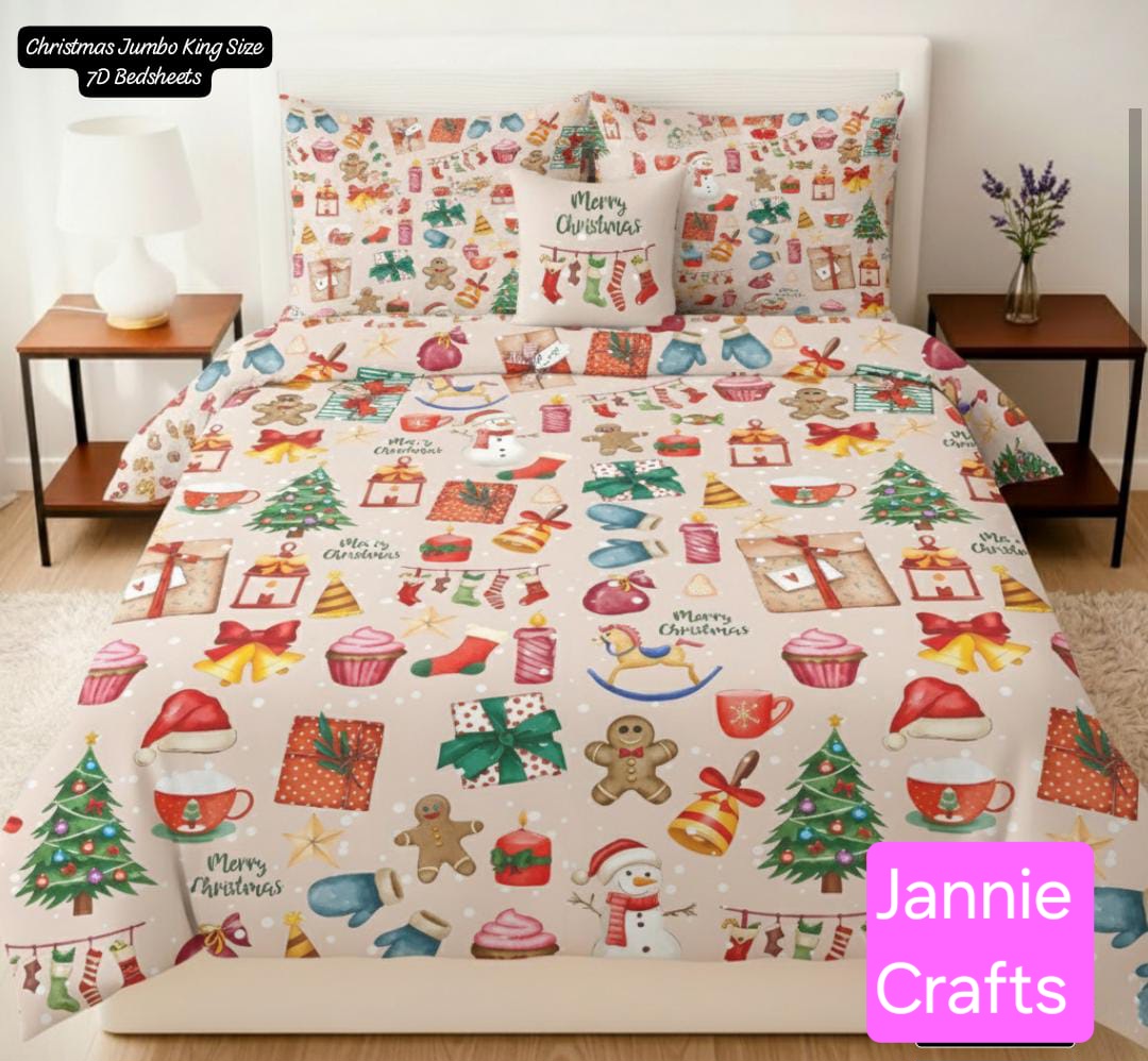 Jannie Crafts 7D Christmas Center Hut Theme Based Bedsheet